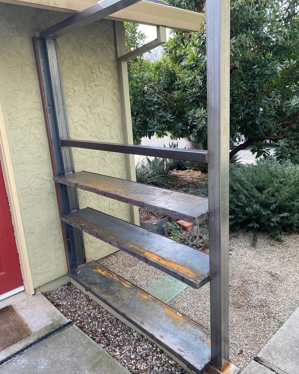 It all begins with an idea. This client had a vision! Remove the existing privacy wall and replace it with a welcoming entryway that was useful and beautiful. On this build we started with rough sketches and rolled with it from there. Not all clients want to participate, but others are thrilled. I thoroughly enjoyed bringing this dream to life. Shelving to support numerous potted plants and river rocks wrapped in steel (frozen in motion). To cap it all off we just had to hand forge a realistic custom agave.